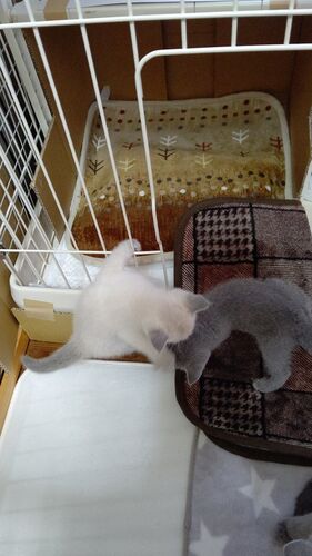佐保ちゃんの子猫ちゃん達、 先日、ブルーポイントの1子ちゃんに脱走された時、 もうすこーしサークルの中にいてほしくて あれこれ脱走防止の対策をしましたー。 そのガードが、ガッチリしてたせいか、おチビさん達 あれこれ脱走ルートを探っても、成功しま…